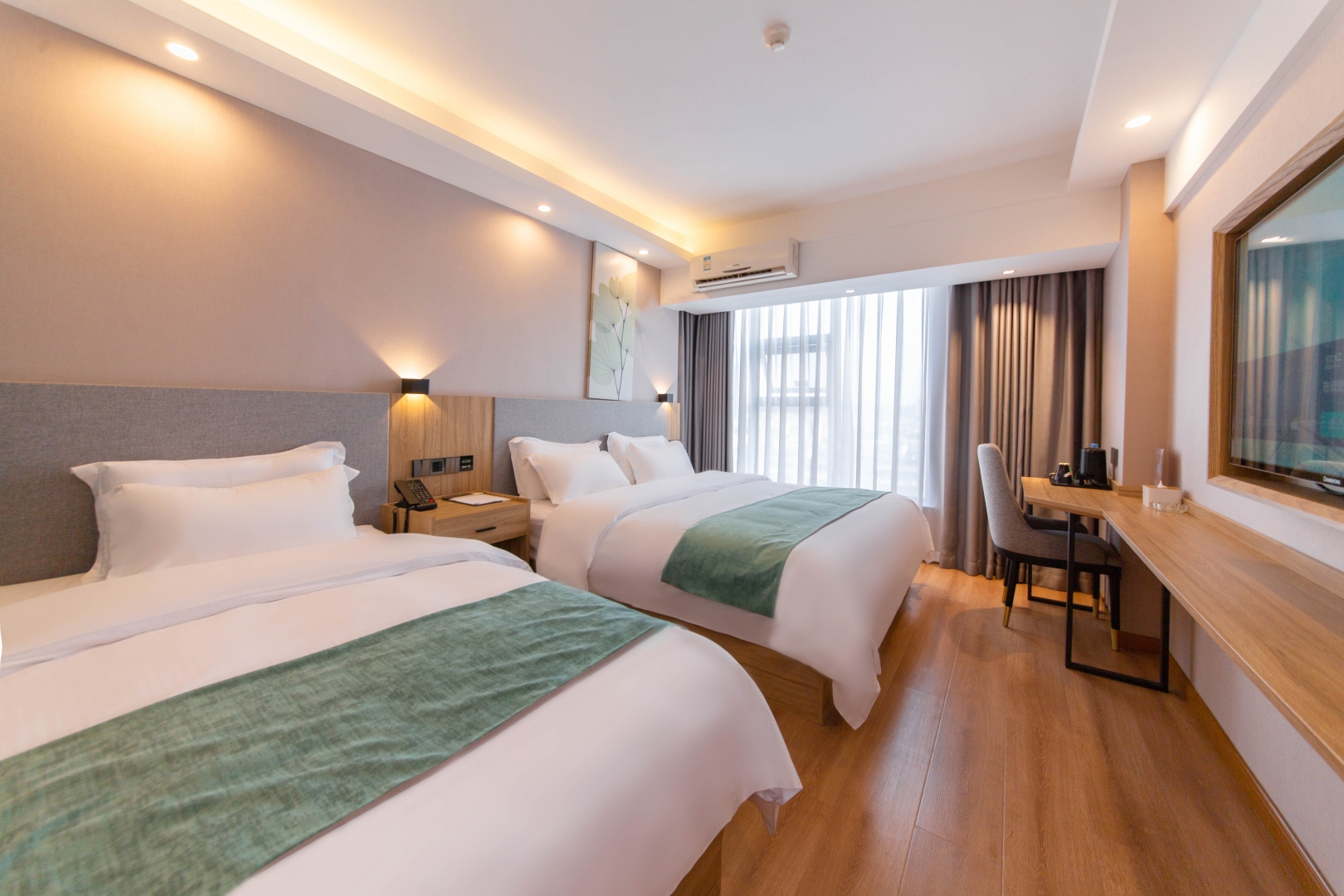 品牌标语:经典商务 匠心品质品牌定位:舒适型中档酒店品牌简介:格林豪泰酒店是格林酒店集团旗下中端商务品牌。以 匠心品质 成就 商务经典 。格林豪泰以经典大气的品牌基因,现代的手法诠释自然元素,融入生活的设计理念,在旅途中,为客人带来 超健康,超舒适,超价值,超期望 的休憩空间。