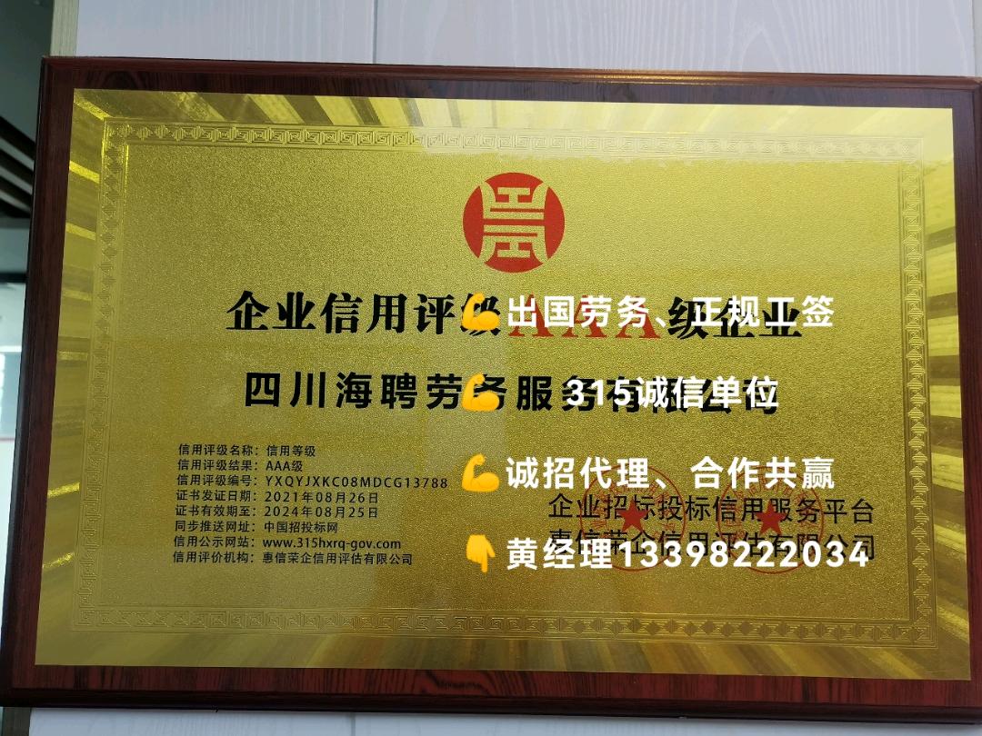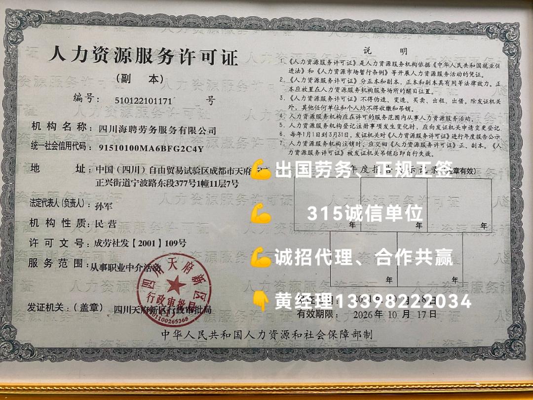 四川海聘劳务服务有限公司是经工商局登记注册成立的一家从事就业信息服务,职业介绍服务,用人单位人力资源管理咨询服务,人力资源信息调查服务。我司拥有统一规划、管理、现代化商务办公环境和设施,并有一批具有丰富从业经验的人力资源领域的顾问团队、劳动法规专一人士和劳动处理人士。 公司以 诚信为本,以德兴企,以义兴利 为企业宗旨,以 专一执著,精益求精 为企业目标;全体员工持以 在快乐中努力工作,在工作中寻求快乐 的态度和信念团结一心。 客户的满意才是我们的满意 我们的服务宗旨:专一、、便捷、诚信 我们的服务对象:企业、事业单位、社会团体、个人客户 我们的服务目标:构建平台、团结协作、实现双赢 我们的战略目标:打造人力资源派遣供应商,通过提供高技能人才提升客户竞争力打造专一的人力资源顾问团队,以提供的服务为客户创造更大的人力资 本为客户创造 ,降低人力资源成本和用工风险,与客户共同成长。